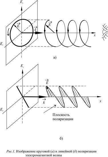 в проекционной картине при наблюдении навстречу волне. На рис.1а показана левая круговая поляризация (вектор