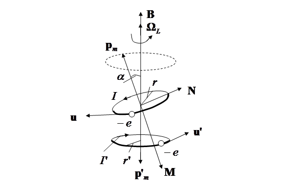 Электрон, быстро вращающийся по орбите в атоме, подобен магнитному диполю. На магнитный момент диполя в магнитном поле действует момент силы