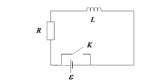 Экстратоки самоиндукции, согласно правилу Ленца, препятствуют изменениям тока, их вызвавшим. Поэтому индуктивность цепи проявляется в замедлении процессов исчезновения тока при размыкании цепи или установления тока при замыкании цепи. Рассмотрим цепь с индуктивностью, сопротивлением и источником тока на рис. 8.4.