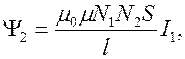 Аналогично найдем магнитный поток через катушку 1, создаваемый магнитным полем тока