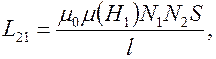 Пусть теперь внутрь катушек помещен ферромагнитный сердечник. Магнитная проницаемость такого сердечника зависит от напряженности поля: