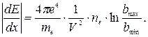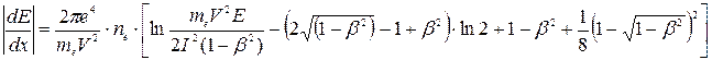 Вывод формулы для потерь энергии на ионизацию электронами в принципе такой же, как и для других заряженных частиц. Также для электронов (z=1) получается соотношение: