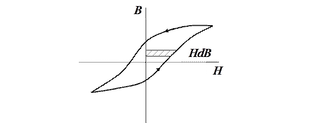 Работа, совершенная источником тока соленоида за период перемагничивания в расчете на единицу объема сердечника, равна площади петли гистерезиса: