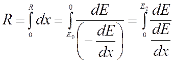 Пробег R частицы с начальной энергией Е0 можно определить выражением