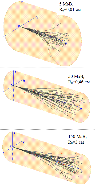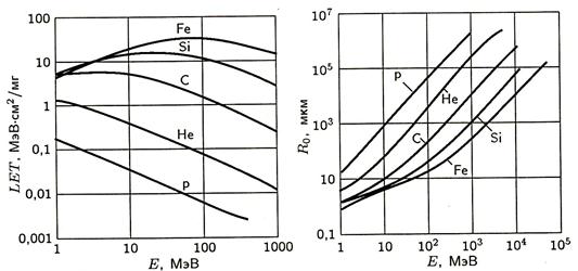 которых для области энергий до 100 МэВ являются ионизационные потери. Поэтому понятно, что величина пробега зависит от массы, заряда, энергии частицы и характеристик среды.
