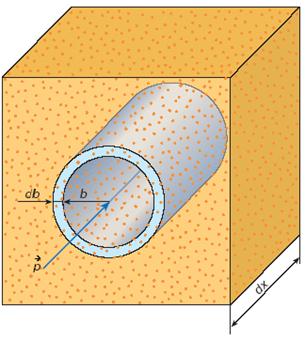При прохождении частицей пути dx она передает энергию Тe каждому из электронов среды, находящихся в объеме кольцевого цилиндра радиуса b, с площадью кольца 2π bdb и длиной dx. Объем такого кольцевого цилиндра –2π bdbdx, а количество электронов, находящихся в нем – ne∙ 2π bdbdx, где ne - плотность электронов в среде.