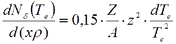 а число δ-электронов с энергией Тe (МэВ) в интервале (Тe, Тe+dТe), созданных в среде на пути в 1 г/см2 релятивистской частицей, получается равным: