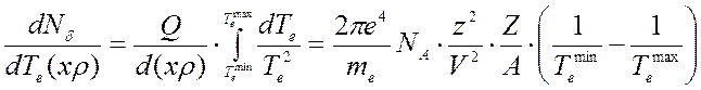 Чтобы найти полное число δ-электронов на единице пути частицы (плотность δ-электронов), надо проинтегрировать по всем возможным энергиям δ-электронов Те от минимальной до максимальной: