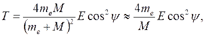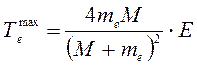 Максимальная энергия, которую может получить электрон при столкновении с ним частицы массы М и кинетической энергией Е, будет: