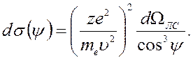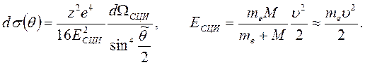 В системе центра инерции (СЦИ) угловое распределение δ-электронов определяется формулой Резерфорда: V – скорость налетющей частицы.
