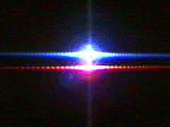 На рисунке приведены (экспериментально полученные картины дифракции на щели излучения гелий-неонового лазера на длине волны 0.633 мкм (красный цвет) и аргонового лазера на длине волны 0.488мкм (синий цвет).