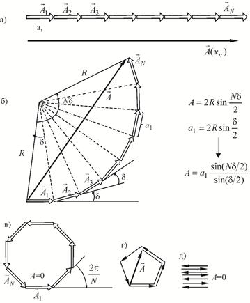 Основные понятия: дифракция волн, приближения Френеля и Фраунгофера, метод векторных диаграмм, интенсивность, главные и дополнительные максимумы и минимумы, постоянная решетки, распределение интенсивности, угловая дисперсия, разрешающая способность дифракционной решетки, критерий Рэлея.