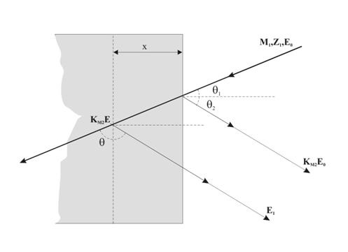 Рассмотрим принципиальные особенности метода обратного резерфордовского рассеяния. Возможная схема применения метода показана на Рис. Коллимированный пучок ускоренных частиц с массой М 1, порядковым номером Z 1 и энергией Е 0 направляется на поверхность объекта исследования. В качестве объекта исследования может быть достаточно тонкая пленка, масса и порядковый номер атомов которой равны, соответственно, М 2 и Z 2.