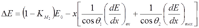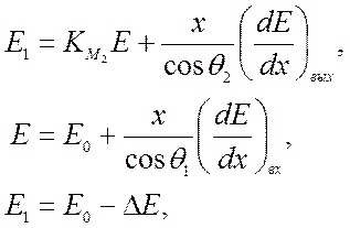 Последнее соотношение лежит в основе перевода энергетической шкалы в спектрах обратного рассеяния в шкалу глубины. При этом глубинное разрешение определяется энергетическим разрешением детектора и может составлять величину до 20 нм. Для определения энергетических потерь частицы (-dE/dx) вх и (-dE/dx) вых можно использовать формулу Бете-Блоха.