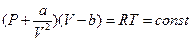 Для нахождения критических параметров Pk, Vk, Tk учтем, что в критической точке уравнение (6) переходит в уравнение
