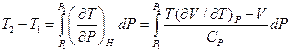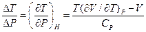 Это соотношение является основным в теории эффекта Джоуля-Томсона. Пусть по разные стороны пробки поддерживается малая разность давлений D P. Соответствующая ей разность температур D T измеряется в опыте. Течение газа предполагается установившимся. Задача теории состоит в том, чтобы, зная D P и уравнение состояния газа, вычислить D T. Поскольку в опыте Джоуля-Томсона энтальпия H не меняется то, рассматривая ее как функцию температуры и давления, можно написать