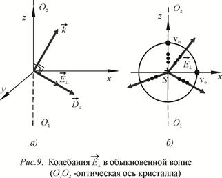 Пусть в кристалле имеется точечный источник света S, который излучает обыкновенную волну (рис. 9б). Колебания вектора