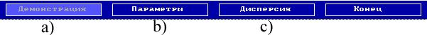 а) – начало демонстрации; b) – изменение параметров спектральных компонент; с) – выбор закона дисперсии.
