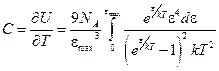 Возьмем один моль вещества, тогда N = NA, и производная от U по T даст молярную теплоемкость кристалла:
