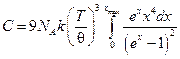 1) При Т << θ верхний предел интеграла будет очень большим, так что его можно приближенно положить равным бесконечности (x max ≈ ∞). Тогда интеграл в формуле (17) будет представлять собой некоторое число, а именно