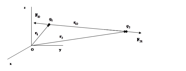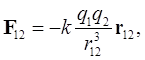 Результаты опытов позволяют сформулировать закон Кулона (см. рис. 1.4, соответствующий случаю одноименных зарядов):