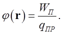 называется скалярная характеристика этого поля, численно равная потенциальной энергии в расчете на единицу величины пробного заряда в той же точке: