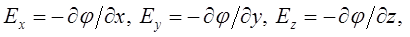 Сравнивая (1.28) с (1.32), получаем формулу связи потенциала с напряженностью электрического поля: