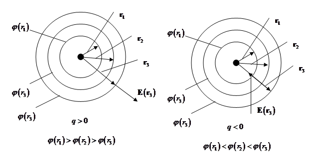 в соответствии с (1.23) представляют собой концентрические сферы с центром в точке расположения заряда