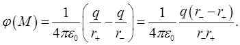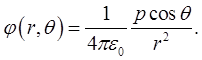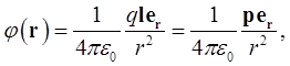 Из (1.38) видно, что поле диполя определяется его электрическим моментом. Потенциал поля диполя убывает с расстоянием от него по закону