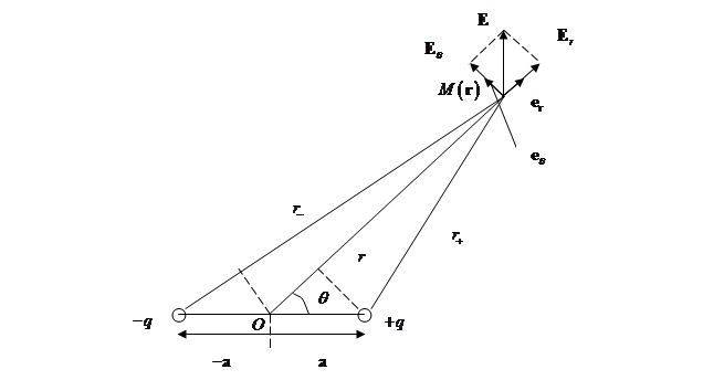 Рис. 1.13. К расчету электрического поля диполя,