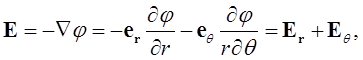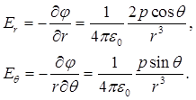Подставим (1.40) в (1.33), получим выражение напряженности электрического поля диполя через потенциал в полярных координатах: