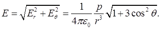 Модуль напряженности поля диполя
