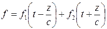 , это две бегущие волны, распространяющиеся в различных направлениях, в скобках записаны аргументы функций. Решение такого вида сохранят вид волны: это основное требование к волнам в вакууме. Проверим данное предположение. Найдем вид функции