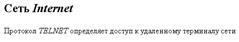 Слово Internet в заголовке второго уровня и слово TELNET в абзаце будут выведены курсивом: