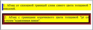 2. p.selection {border: 12pt brown groove} – задание для абзаца класса selection всех границ толщиной 12 пунктов, темно-синего цвета со стилем вдавленная линия.