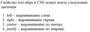 <p>Свойство text-align в CSS может иметь следующие значения:
