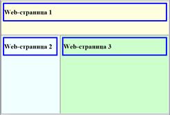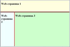 Набор фреймов содержит фрейм, в который выводится Web-страница Page1.html и вложенный набор фреймов. Вложенный набор фреймов, в свою очередь состоит из двух фреймов, в которых выводятся соответственно Web-страницы Page2.html и Page3.html. Для рамок родительского набора фреймов задана ширина 6 пикселей, а для рамок вложенного набора фреймов – 3 пикселя (атрибут framespacing будет воспринят только Web-браузером Internet Explorer, а атрибут border – всеми остальными Web-браузерами).