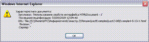 1. Получение характеристик документа HTML в примере 4.5.1 (с учетом изменений, произведенных в примерах 4.5.5, 4.5.7, 4.5.8, 4.5.9, 4.5.10 и 4.5.11):