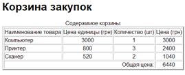 В документе HTML задан также сценарий формирования таблицы содержимого корзины: