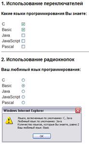 Пример 4.5.24. Использование переключателей и радиокнопок: