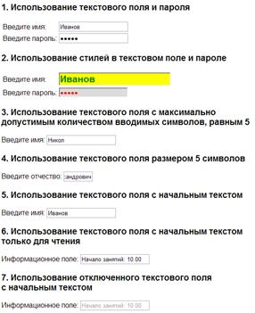 Пример 4.5.25. Использование текстовых полей и полей ввода пароля: