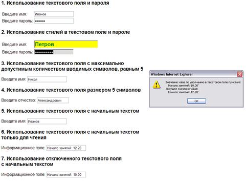 Web-страница для этого фрагмента (при заполнении полей в пунктах 1-4) будет иметь следующий вид (обратите внимание, что курсор находится в конце текстового поля в пункте 4):