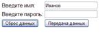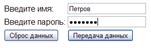 Если нажать на кнопку Передача данных, то введенные данные (имя и пароль пользователя) будут пересланы на Web-сервер: