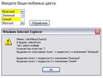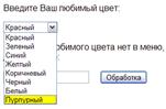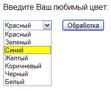 При нажатии кнопки Обработка выбранный пункт меню будет передан на Web-сервер (поскольку атрибут value для пункта меню не задан будет передано текстовое содержимое пункта меню):