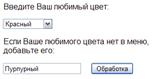 Вывод этого меню и текстового поля (после ввода добавляемого цвета) в Web-странице имеет следующий вид: