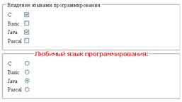 Пример 4.5.33. Использование элементов fieldset и legend: