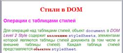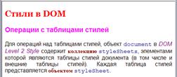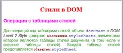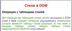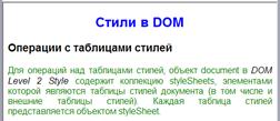 Средства DOM для таблиц стилей в документе HTML позволяют выполнять как операции над таблицами как объектами, так и операции над содержимым таблиц (правилами и свойствами).