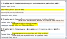 1.1. Вывод второго и третьего абзацев текста со статическим позиционированием: