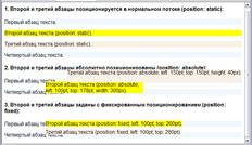 1. Вывод текста со статическим, абсолютным и фиксированным позиционированием: