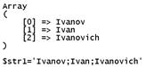 Функция explode() формирует из исходной строки string массив строк, разбитых по границам, указанным в строке separator. Если задан параметр limit, число элементов массива ограничивается значением, указанном в этом параметре. Функция implode() выполняет обратную задачу – сливает элементы массива pieces в возвращаемую строку с заданием после значения каждого элемента, кроме последнего, строки glue.